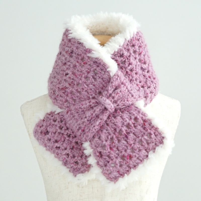 【B】かんたん「棒針編」ファー毛糸とカラフル毛糸のコラボマフラー