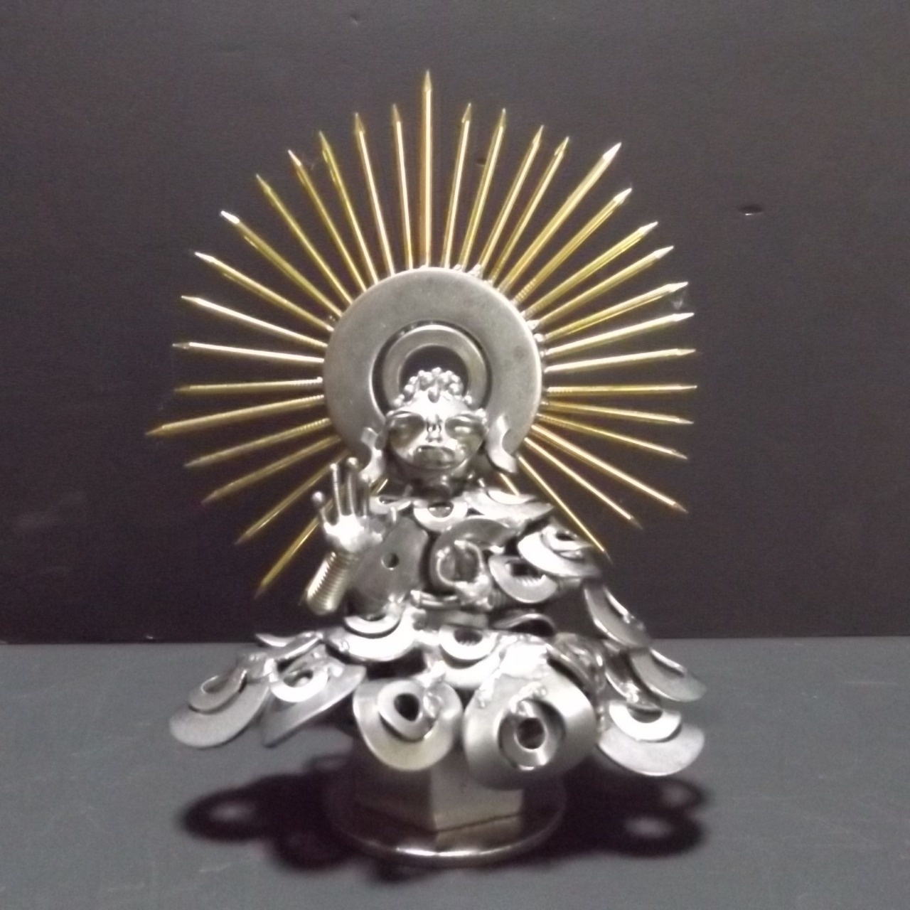 無機質なネジのみを使い職人が一つ一つ心を込めて手作りしているアート作品の工房です。