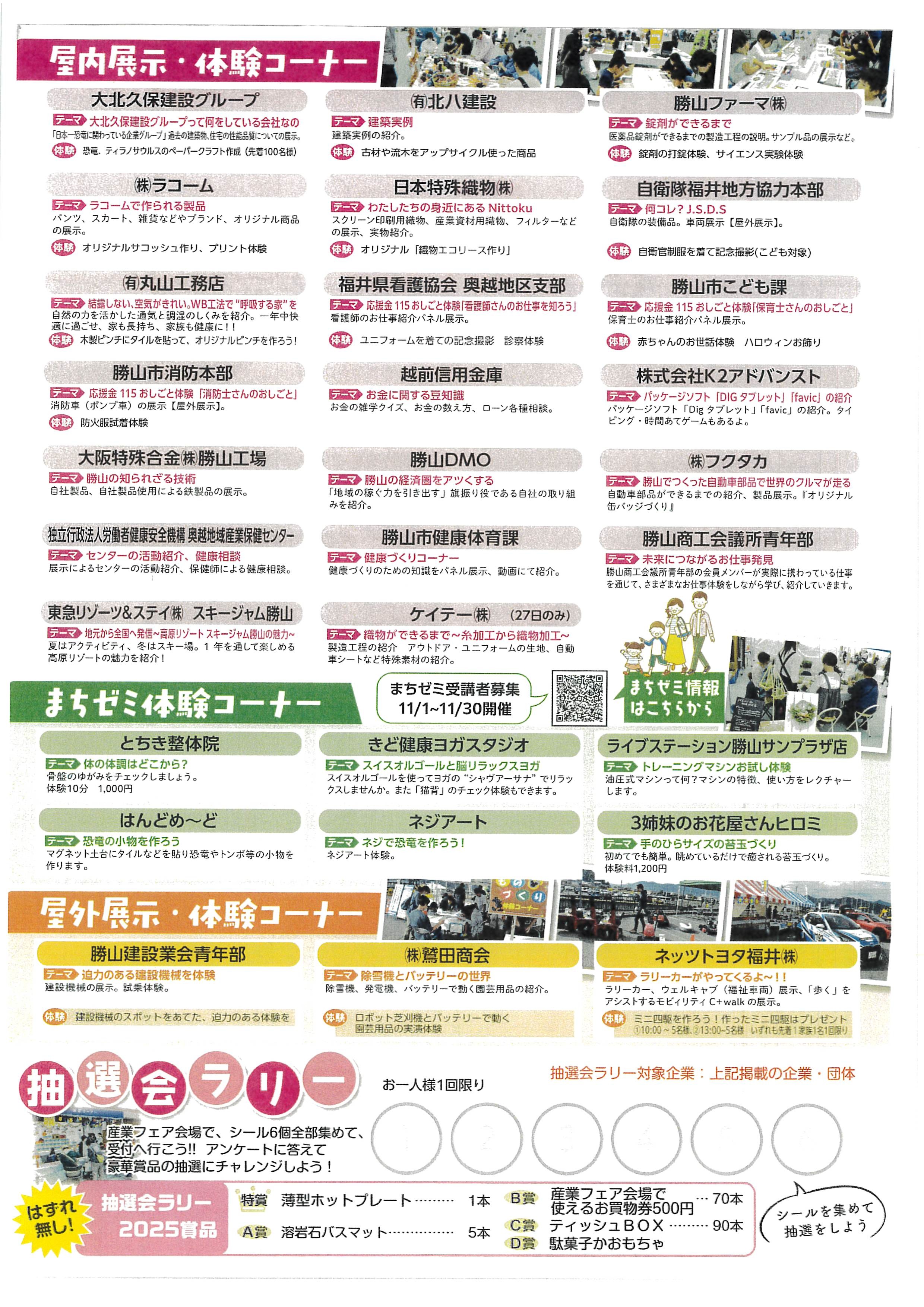 勝山商工会議所より、「勝山産業フェア2025」のお知らせです。